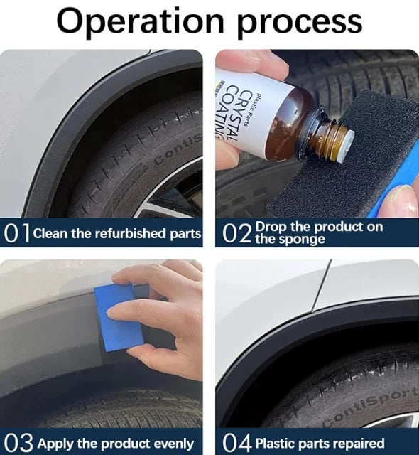 - [En langtidsholdbar løsning] - Vår plastrestaurator er bygget for å vare! Den gir en utmerket glans, og du vil bli overrasket over hvordan den kan friske opp hele bilen på få minutter. Effekten kan vare i opptil 6 måneder.