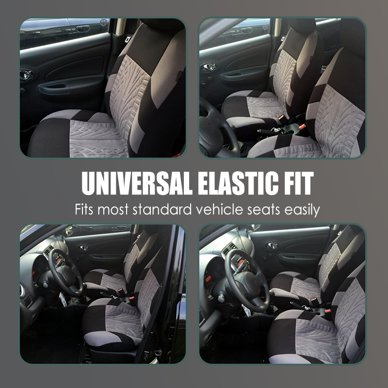 UNIVERSAL FIT DESIGN: Disse setetrekkene er laget av et fleksibelt og elastisk stoff og passer til de fleste standardbiler, lastebiler og SUV-er. Det tilpasningsdyktige designet sikrer en tettsittende og sikker passform, og gir interiøret et rent og profesjonelt utseende.