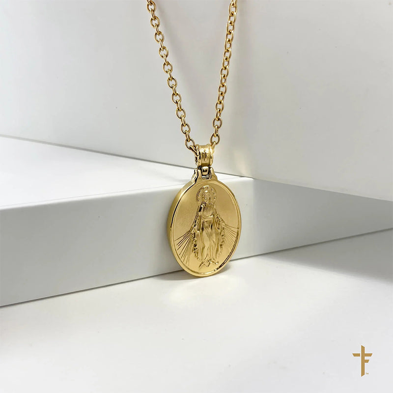 MIRACULOUS MEDAL DESIGN: Kjent som den mirakuløse medaljen, bringer dette halskjedet mirakler, beskyttelse og fred.