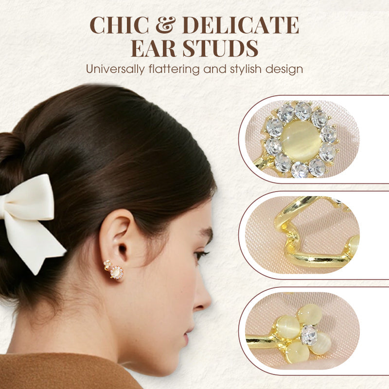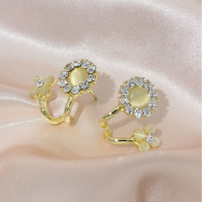 UTSØKT HÅNDVERK: Hver øredobb viser frem en strålende strass satt i en omhyggelig utformet gullfarget setting. Den nøyaktige steinplasseringen fanger og reflekterer lyset vakkert, og sikrer en blendende gnist fra alle vinkler. Denne oppmerksomheten på detaljer garanterer et smykke som opprettholder sin fantastiske visuelle appell med varig holdbarhet.