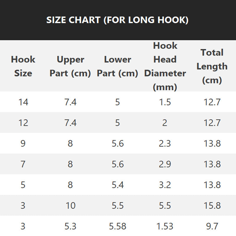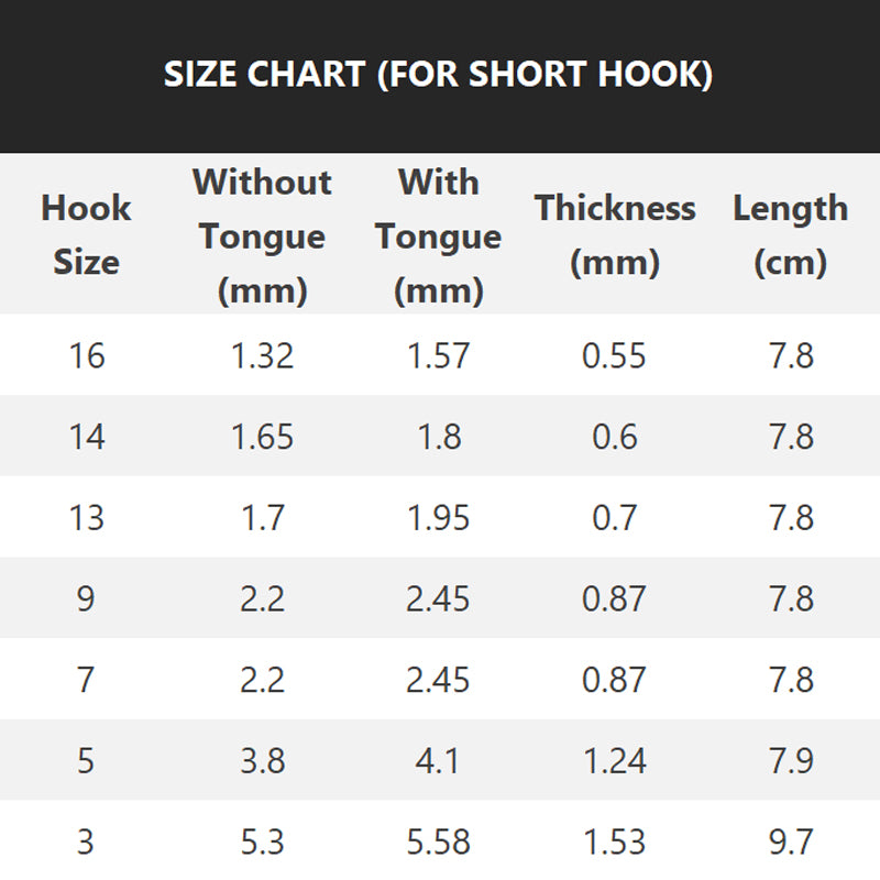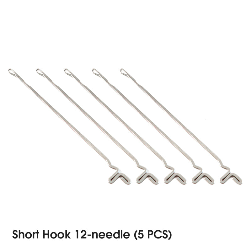 Lengde (for tosidig tungekrok): 3,6 cm (12-nål), 4,3 cm (14-nål)