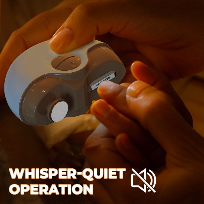 TRYGG OG SKÅNSOM FOR ALLE ALDRE: Sikrer trygg neglegrinding med en anti-klype-funksjon som stopper rotasjonen umiddelbart når overdreven kraft påføres. Designet for å beskytte delikate fingre, og gir en skånsom og sikker pleieopplevelse.