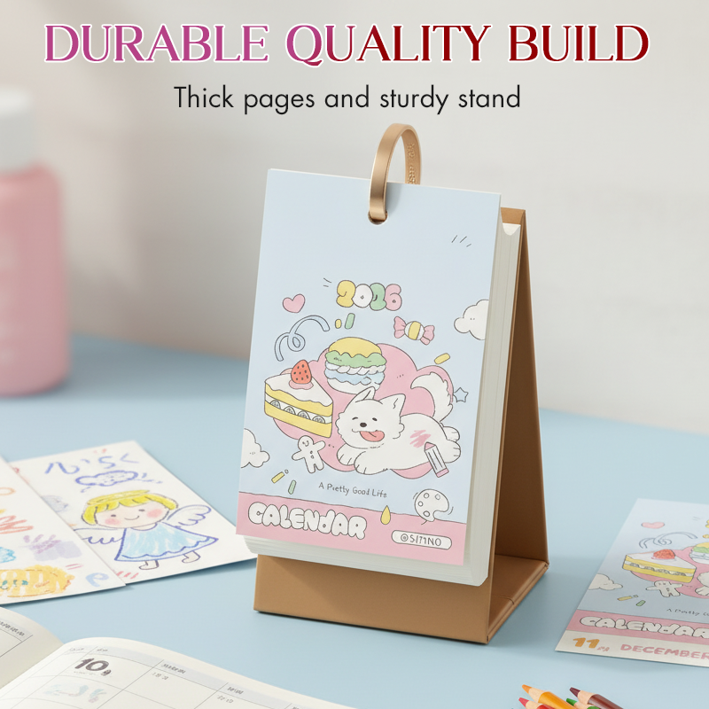 LAGET FOR Å HOLDE, LAGET FOR Å NYTE - Denne kalenderen er laget av førsteklasses fargepapir og har et solid trekantet stativ, slik at den holder seg lys, stabil og klar for daglig kreativitet. De tykke sidene holder fargene klare uten å blø ut, mens glatte metallringer gjør det enkelt å bla gjennom eller vise frem favorittene dine.