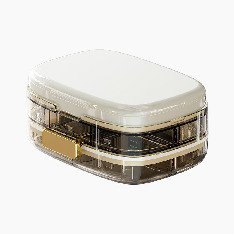 INTELLIGENT DESIGN MED TI ROM- Ti uavhengig forseglede rom isolerer forskjellige kosttilskudd fullstendig. Hvert rom har plass til 2-3 standardkapsler eller tabletter, noe som letter daglig doseringsstyring samtidig som det forhindrer krysskontaminering av lukt og smak mellom rommene.