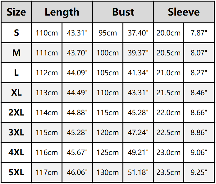 Størrelse: S, M, L, XL, 2XL, 3XL, 4XL, 5XL