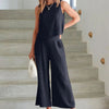 2-delt sett i bomullslin for kvinner - ermeløs kort topp og bukser med vide ben